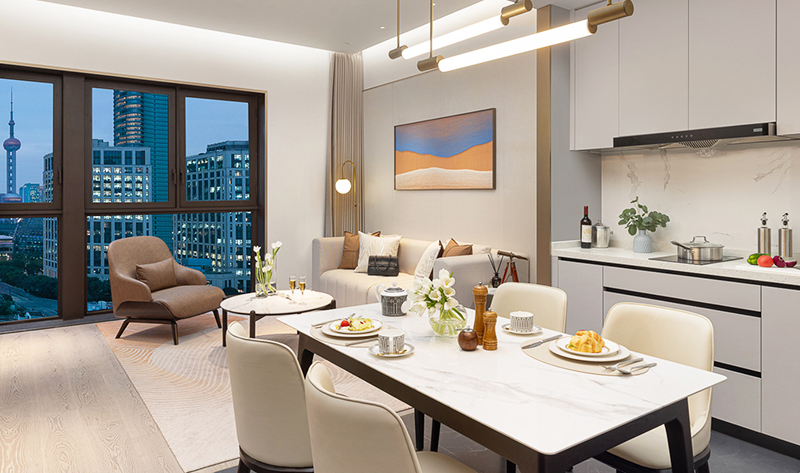 西岸中環匯服務公寓于2023年底開業,由香港置地打造,內部裝修簡潔時尚,擁有多種戶型可選,家具及電器齊全。緊鄰徐匯濱江,有一線江景。